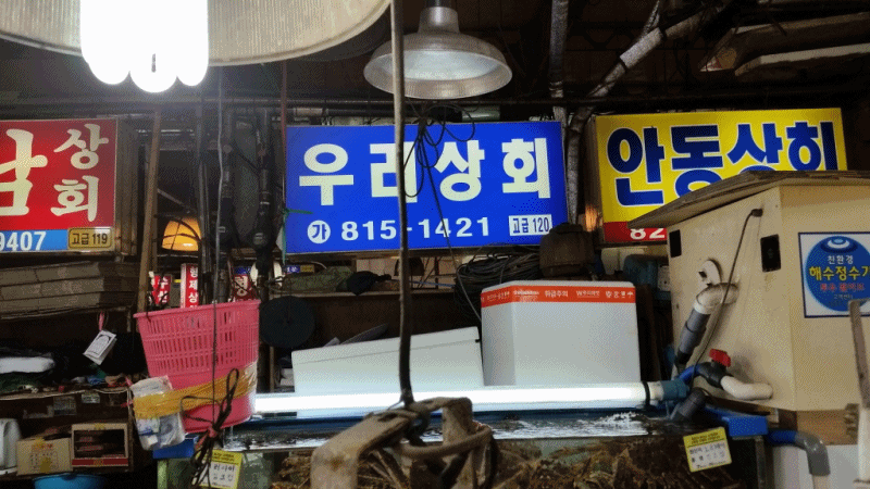 우리상회는 노량진 수산시장 정후문 중앙통에 위치한